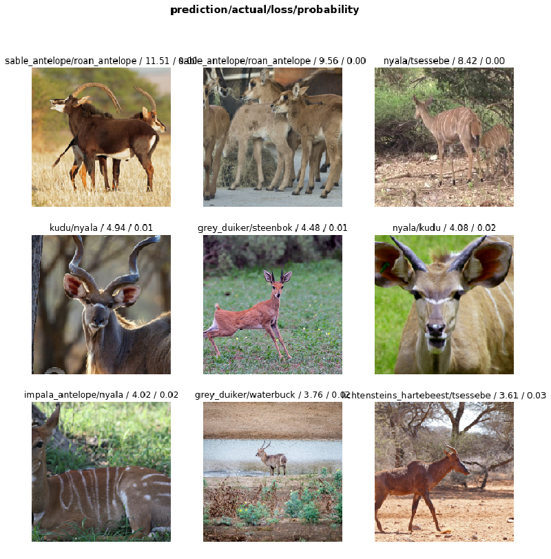 The interpreter also has a very useful feature that allows us to easily plot the the examples that had the largest loss values.