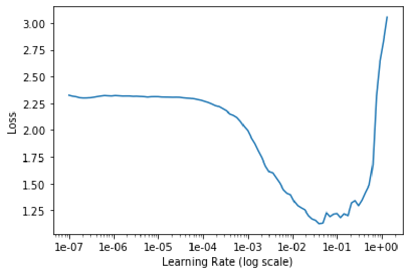 Fortunately there is a simple way to estimate a good learning rate. First described by Leslie Smith in Cyclical Learning Rates for Training Neural Networks, and then popularized by the FastAI library, which has a first class implementation of a learning rate finder.